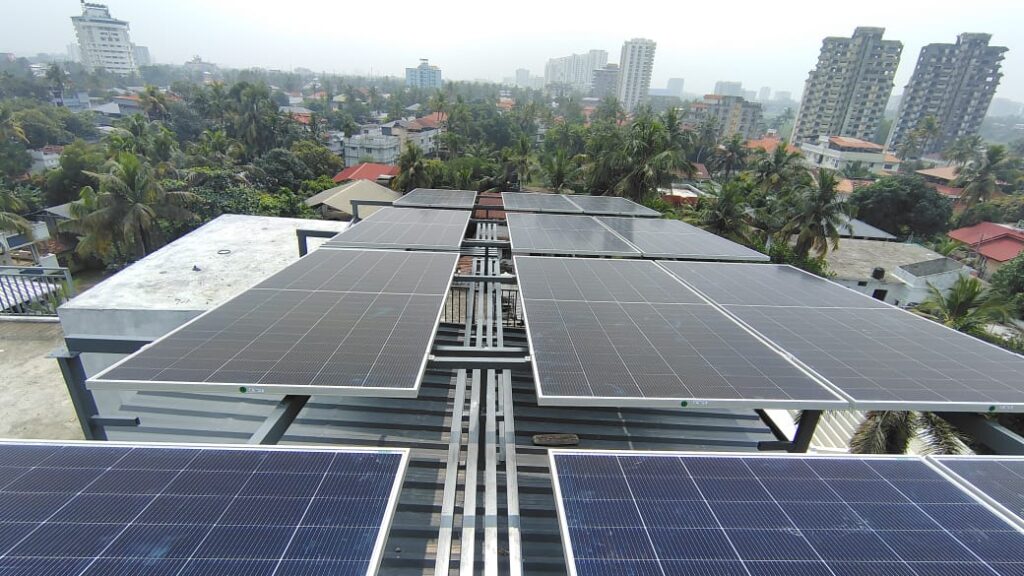 Positioned amidst greenery and surrounding residential buildings, the system demonstrates how solar technology can be seamlessly integrated into everyday urban and semi-urban settings without impacting existing structures. Built to withstand varying weather conditions, the installation is designed for long-term reliability. With minimal maintenance requirements and steady energy output, rooftop solar systems offer a dependable alternative to conventional power sources.