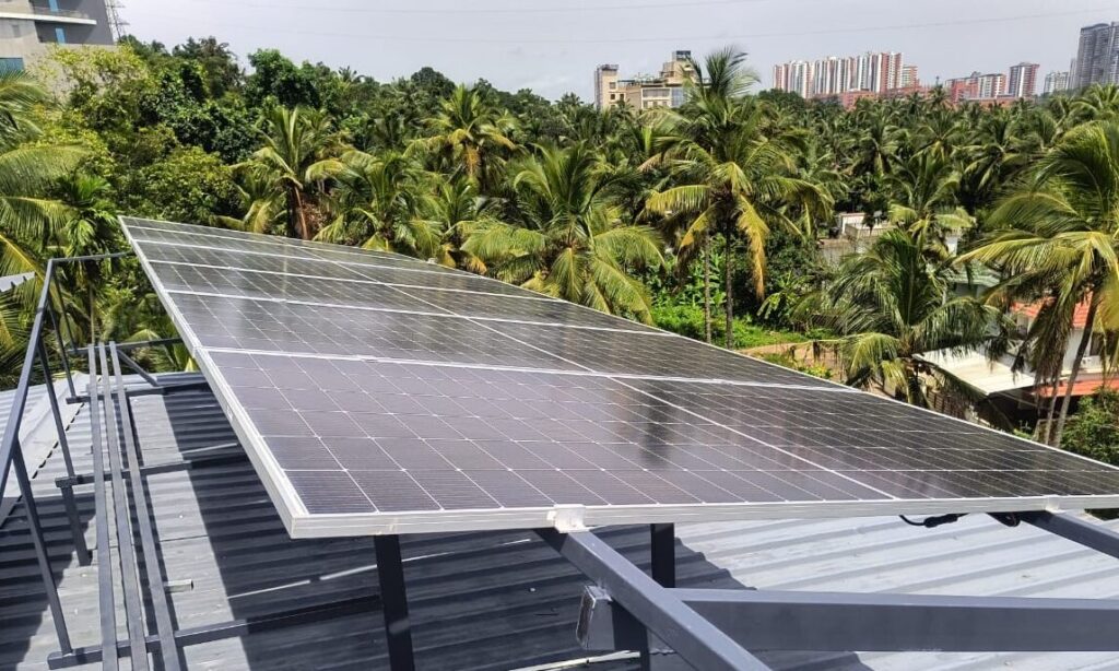 Set against a backdrop of lush greenery and nearby residential buildings, the installation blends naturally into its surroundings while maintaining a clean and modern appearance. Built to withstand varying weather conditions, the system is suitable for long-term residential use and requires minimal maintenance, offering consistent and dependable energy output.